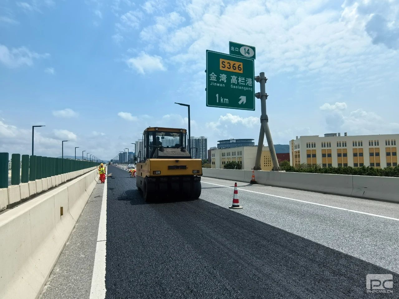 我公司参建珠海机场高速冷拌冷铺磨耗层养护项目顺利完工